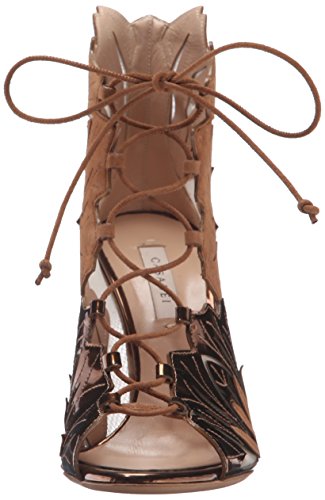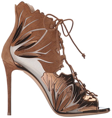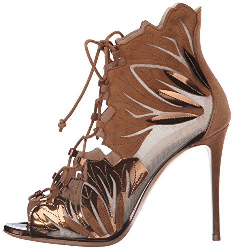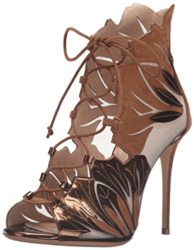 Metallic and suede leaves lace up sandal