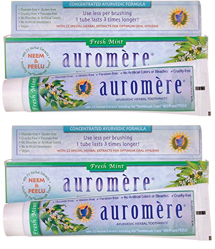Auromere Fresh Mint Ayurvedic Herbal Toothpaste With 23 Special Herbal Extracts For Optimum Oral Hygiene, 4.16 oz. (Pack of 2)