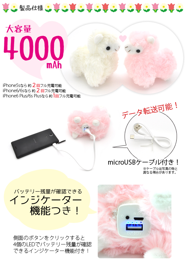 モフモフ♪4000mAhアルパカぬいぐるみモバイルバッテリー