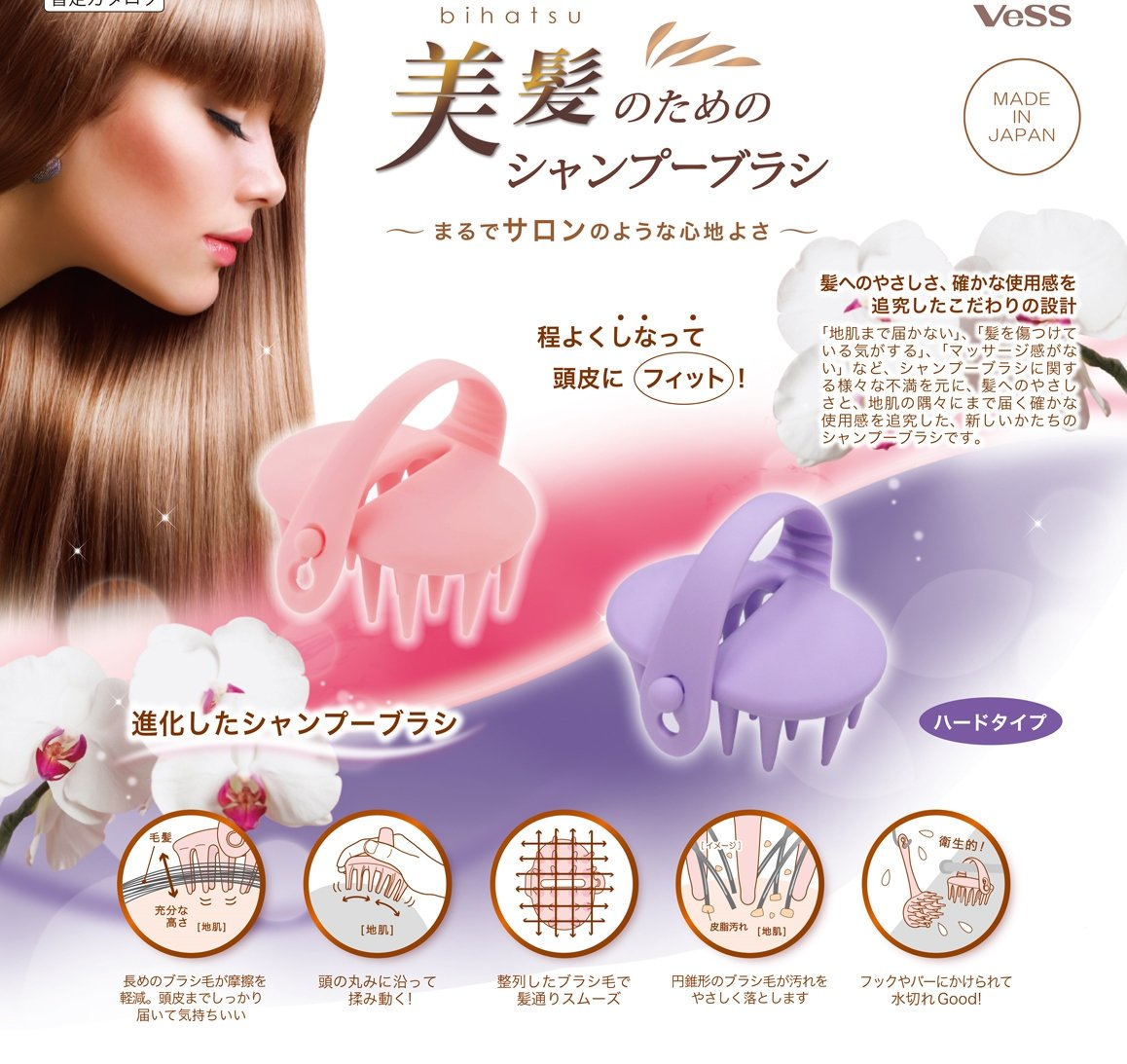 美髪のためのシャンプーブラシ。 まるでサロンのような心地よさ。 程よくしなって、頭皮にフィット。 髪へのやさしさ、確かな使用感を追求したこだわりの設計です。