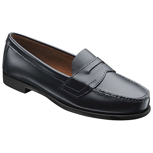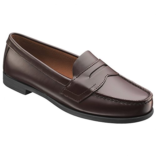 - Smooth, polished leather upper decorated with penny slot and moc toe design for a sophisticated appeal.