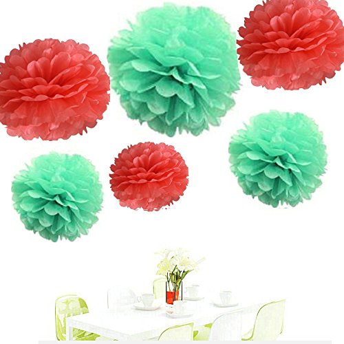 Since ® 12pcs 8inch 10 inch 14 inch Tissue Paper Pom-poms Mint and Coral Outdoor Decoration Tissue Paper Pom Poms Party Balls Wedding Christmas Xmas Decoration