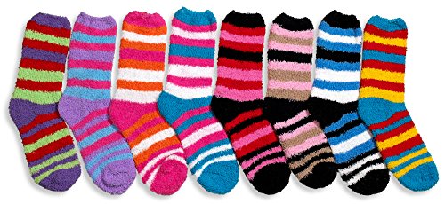 -. Feature : Picture displays an assortment of colors. Each order is a random mix of 6 pairs. / Soft and stretchy material. Add extra warmth and comfort to your feet with these fuzzy winter socks. / size 9-11. Fits women's shoe size 4-9 / measures: inches. Crew style provides extra coverage. Hits around mid-calf / Comfort lounging socks. Warm and ultra soft suitable for cold winter months.