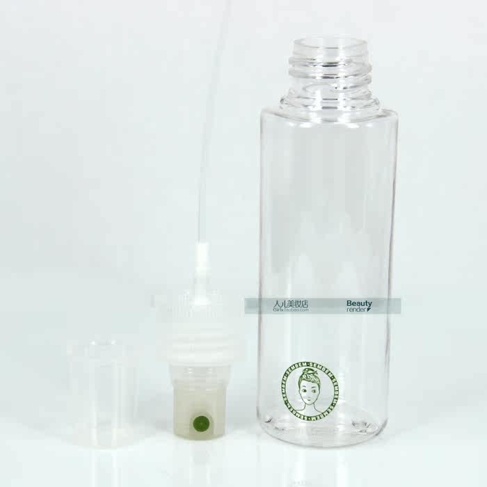 PET transparent plastic, spray nozzle with cover, press the nozzle spray is very good, fine and uniform, no less than the inlet nozzle.