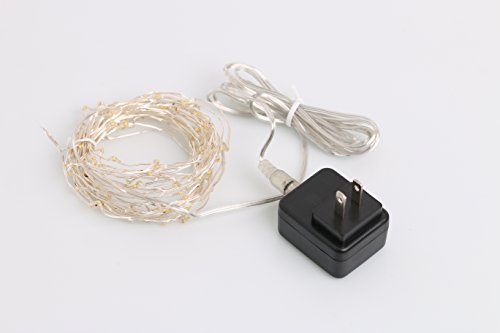 Micro 100 Warm White LED Starry Lights Plug In on 32 Ft Long Silver Ultra Thin String Wire [NEWEST VERSION] , Power Adaptor Included, Perfect For Creating Instant Appeal in Any Setting - Christmas Parties, Bedrooms, or an Intimate Environment Anywhere in