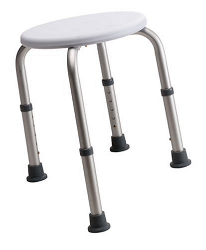 - Feature : Round shower stool is ideal for smaller tubs or shower stalls / Constructed of strong 1" anodized, aluminum tubing / Rust-resistant / Large molded polystyrene seat / Mar-resistant rubber tips for added safety and stability