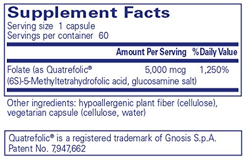 Provides the naturally occurring form of folate* Folate 5,000 provides 5,000 mcg of folate as 5-methyltetrahydrofolate (5-MTHF), the universally metabolized and biologically active form of folate. Quatrefolic® is a registered trademark of Gnosis S.p.A. Patent No. 7,947,662