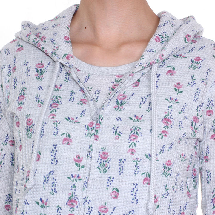 サーマル王道ブランド"JEMORGAN / ジェーモーガン"の、春先~夏にかけて重宝するジップパーカーです。 サーマル独特のサラッとした肌触りで、湿度の多いシーズンや肌寒い時にサッと羽織れる快適な着心地です。 また、ジップ部分はスライダーが2つ付いているので、座る際などに裾のもたつきが軽減され、便利な仕様。 シンプルでかわいい花柄のプリントが施されているので、一枚でもオシャレに着こなせます。