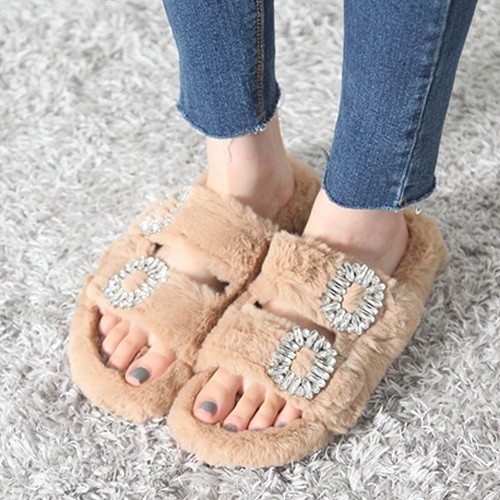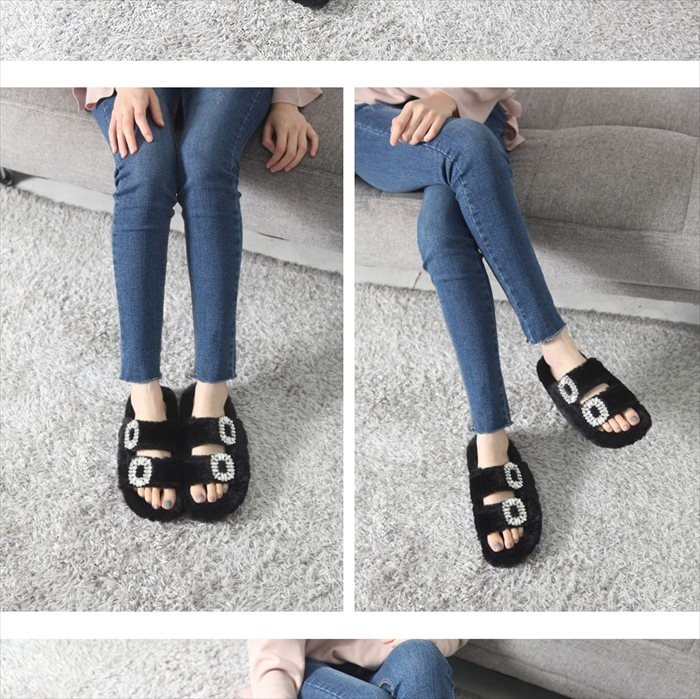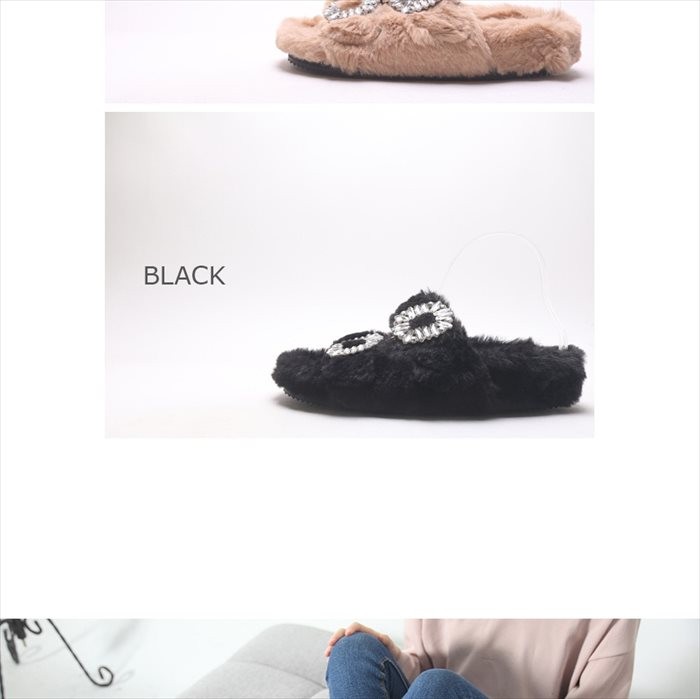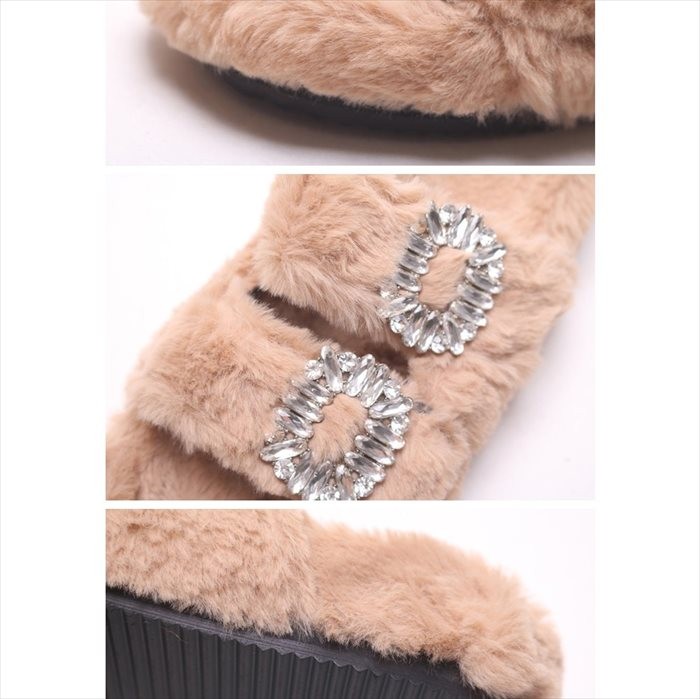 商品名:サンダル レディース ファー ビジュー 2017 秋冬 ファッション 靴 婦人靴