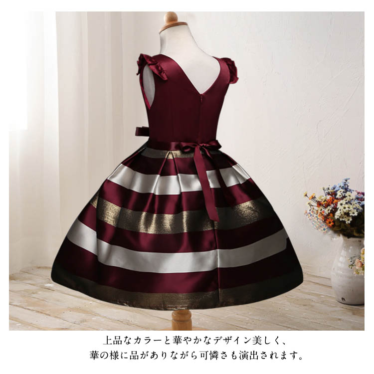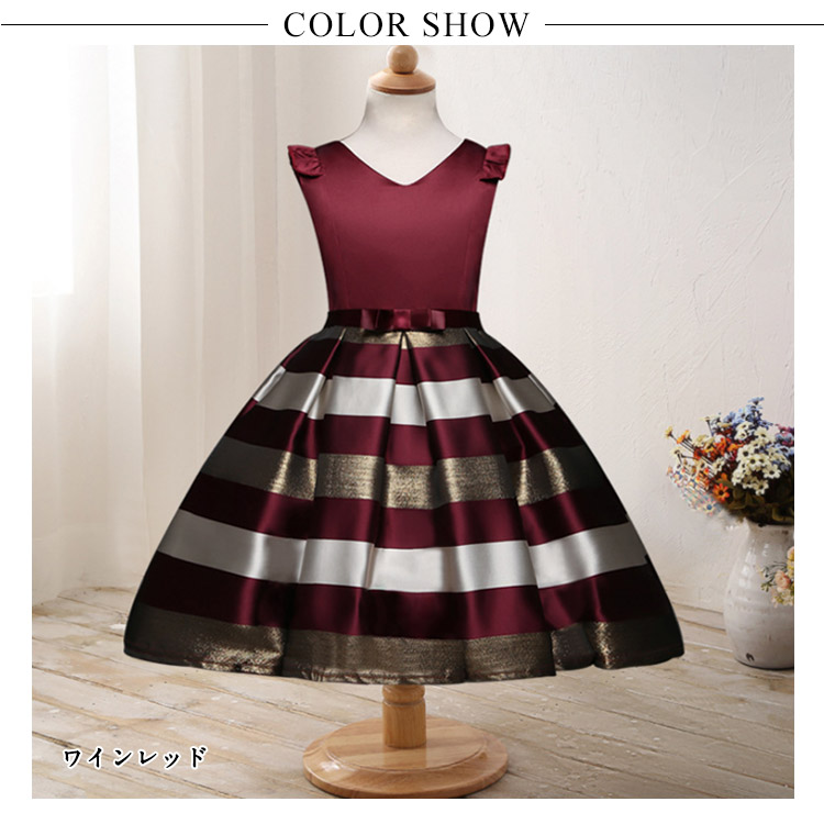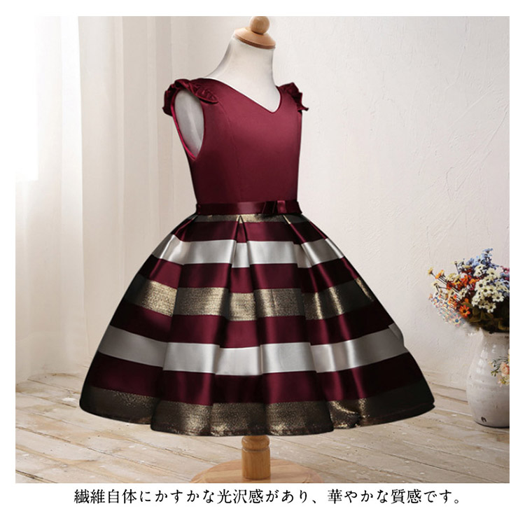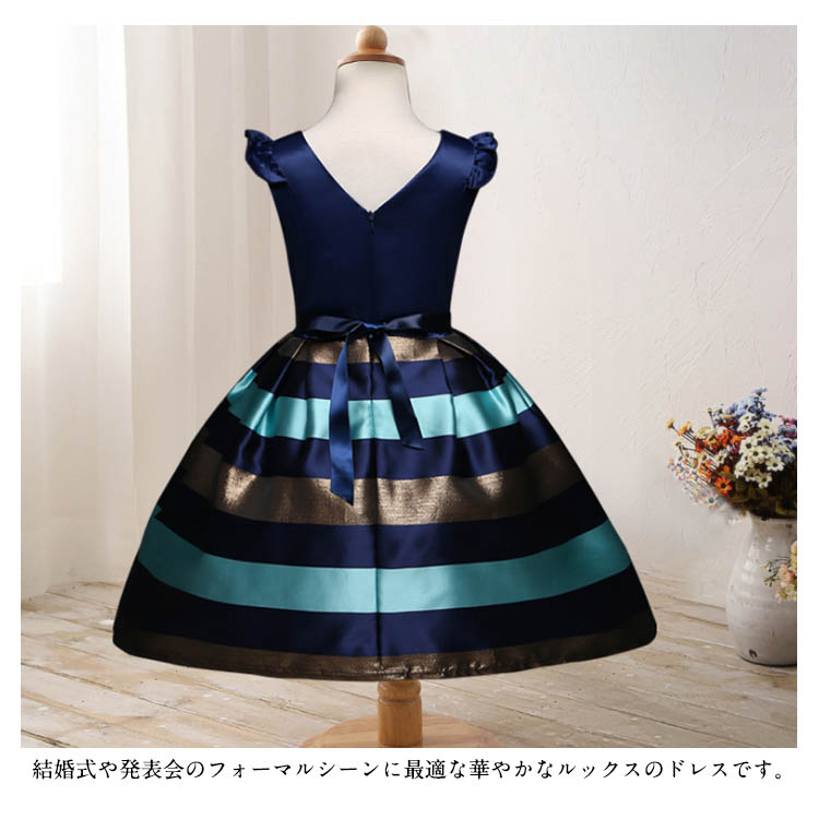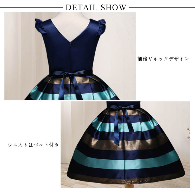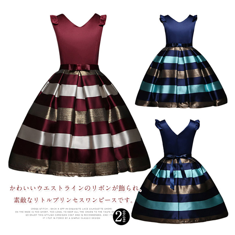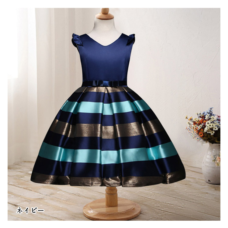| かわいいウエストラインのリボンが飾られ、素敵なリトルプリンセスワンピースです。繊維自体にかすかな光沢感があり、華やかな質感です。上品なカラーと華やかなデザイン美しく、華の様に品がありながら可憐さも演出されます。サテンのリボンベルトを結んで、後ろ姿もエレガントに、サイズ調整もできます。結婚式や発表会のフォーマルシーンに最適な華やかなルックスのドレスです。 | |