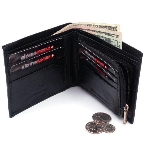 - Title : Mens Leather Wallet Zipper Coin Purse 6 Card Slots 3 More Pockets 2 Bill Section