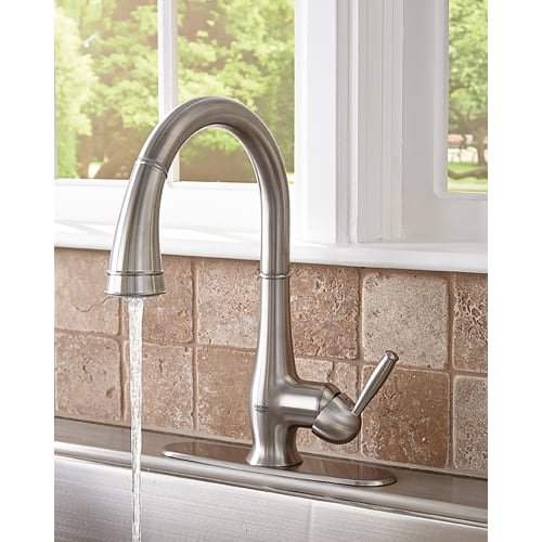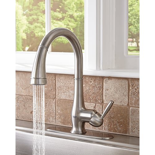 Grohe 30 216 Wexford Pull-Down High-Arc Kitchen Faucet with Dual Spray Control a, Starlight Chrome