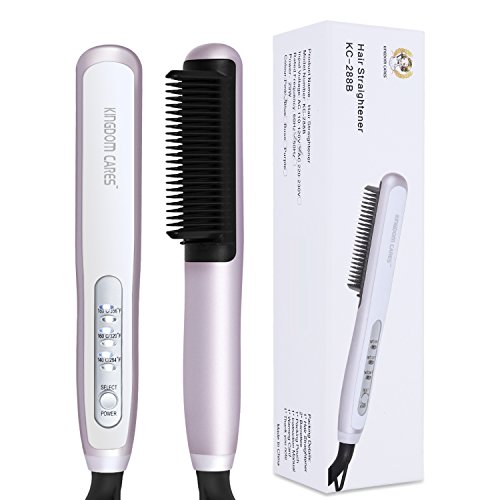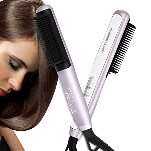 KINGDOMCARES Hair Straightener Comb Brush PTC Ceramic Heating Straightening Curling Anti Scald Static Flat Plates Irons Comb Finish All in 1 Electric...
