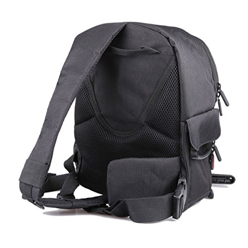 Adjustable, padded compartments for ultimate protection/Lots of pockets, pouches, and compartments for all your gear/Waist, chest, and heavily padded shoulder straps for comfortable carrying/Small size allows for all the extras you need on your photo adventure