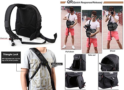 Comfort on the go Take your DSLR camera with you on outdoor day trips or wild and crazy adventures. Lightdow® QR (quick response/release) bag keeps your camera well protected while your accessories sorted & handy, so you can capture those extraordinary moments that happen in a split second. It is especially suitable for digital photojournalists, news, and sports photographers.