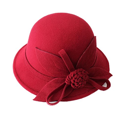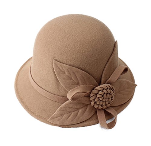 (FUNNY365)/Accessories/Hats/DIRECT FROM USA/FUNNY365 Women Flower Felt Cloche Bucket Hat Leaf Dress Winter Cap Fashion