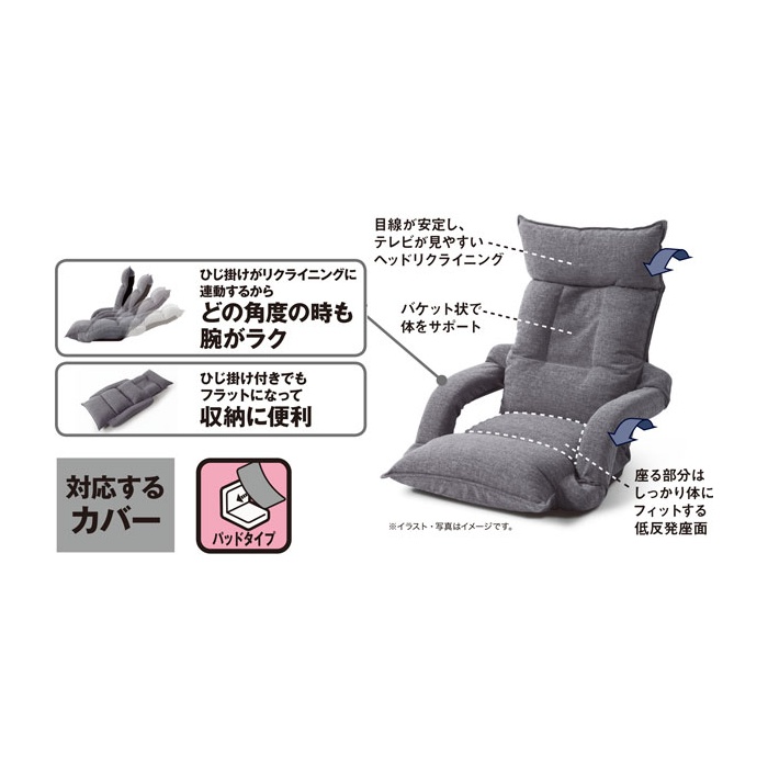 원본상품명:ひじまでフラットになる 座椅子(テリ?GY) 【送料有料玄?先?納品】
