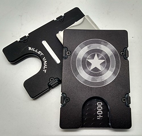 Binding : Apparel Product Description The badass BilletVault Aluminum Wallet has been minimally machined from two pieces of solid billet aluminum. Aluminum is anodized with design laser engraved. Carry only what you need, with its size easily adjusting from your daily ID and bank card, to up to twelve cards for traveling or networking events. With a money clip included for carrying your currency, and 4 extra O-rings, it's a convenient carryall no matter what you want with you. The lightweight 81 gram construction of this wallet lends itself to utter comfort. The slim front pocket profile helps alleviate lower back pain, while the tough construction also keeps your information secure by blocking RFID devices used to wirelessly steal your identity or credit card information. You're sure to be safe as well as stylish with the beautiful BilletVault Aluminum Wallet. Product dimensions are 2 3/8 x 3 1/2 x 1/4 completely empty. This wallet will never wear out. 0