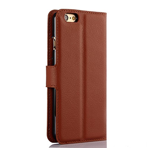 Premium Leather Wallet Case Cover with Stand Card Holder for iPhone 6 Plus / iPhone 6S Plus Phone (Wallet - Brown)