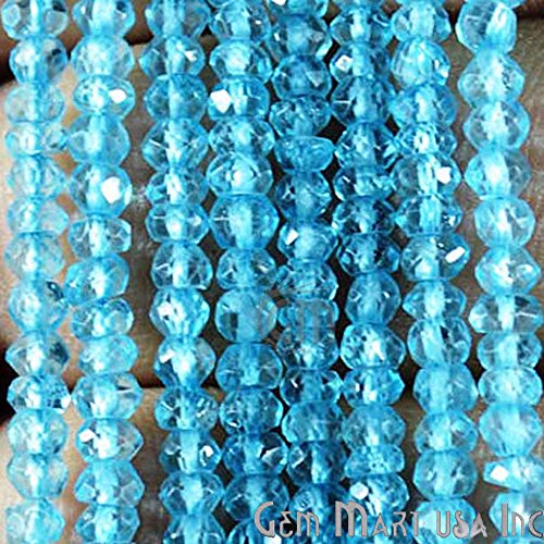 Blue Topaz micro faceted rondell for jewelry making, decoration or collection purposes. Ideal for jewelers, designers, hobbyists, crafters, collectors and teenage kids (as beading project).