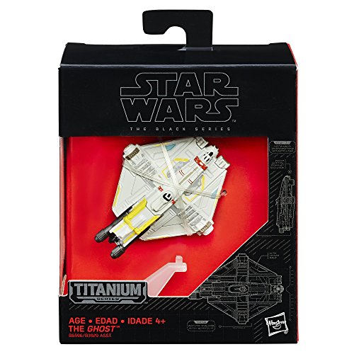 -. Binding : Toy -. Brand : Star Wars -. EAN : 0630509404193 -. Feature : Stand helps simulate hovering effect / Detailed vehicle looks just like the one in Star Wars: Rebels / Re-create favorite battles from the Star Wars universe / Expand and enhance Star Wars collections / Includes vehicle and stand. -. IsAdultProduct : 0 -. Label : Hasbro -. Manufacturer : Hasbro -. Model : B6596AS0 -. MPN : B6596AS0 -. PackageQuantity : 1 -. PartNumber : B6596AS0 -. ProductGroup : Toy -. ProductTypeName : TOYS_AND_GAMES -. Publisher : Hasbro -. Studio : Hasbro -. Title : Star Wars Rebels Black Series Titanium Series The Ghost -. UPC : 630509404193 -. Warranty : No Warranty