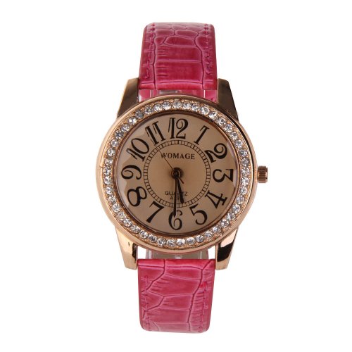 - Feature : Round Face watch with Arabic numerals hour indexes / Precise quartz movement to keep accurate time / Watchcase material:alloy-rose gold face, stainless steel back / With Adjustable Watch strap:PU leather-255mm(L)-31mm(W),fit most people / A decent but also high cost performance present for friends,various colors for your choice