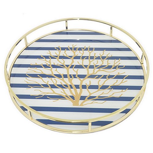 Benzara HRT-45493 15" Golden Metal Tray with Designs