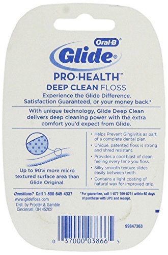 ReleaseDate : 2015-07-16 Studio : PG Publisher : PG Binding : Health and Beauty Product Description Oral-B glide pro-heath deep clean floss helps remove plaque between teeth and below the gumline with a cool burst of clean feeling. The silky-smooth, shred resistant texture slides up to 50% more easily in tight spaces vs. Regular floss. 0