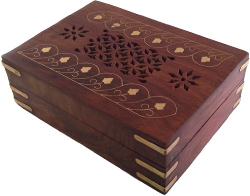 Handcrafted Wooden Box with Intricate Brass Inlaid Floral Design and Floral Hand Carving, Perfect for Home Décor or As a Gift to Family and Friends