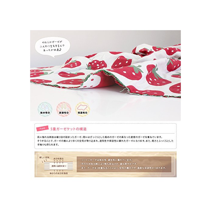 【경쾌하고,?지 않다,5 중거즈의 상쾌함】거즈를 밀피유와 같이 5중으로 재차 있기 때문에,가볍게 살짝 한 촉감입니다.우수한 환기성에?기 어렵고, 친절한 아 깎 고,1년을 통해 쾌적하게 사용하실 수 있습니다.