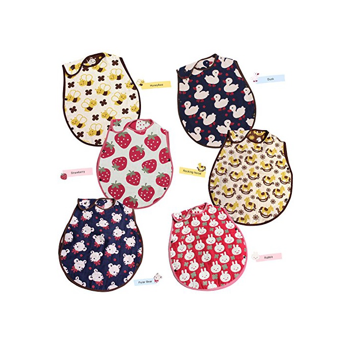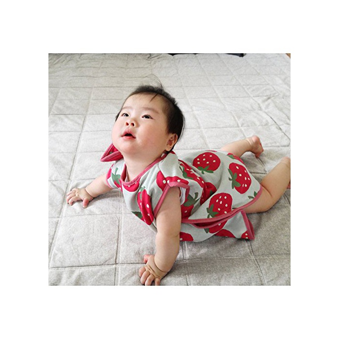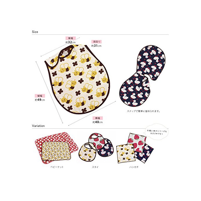 【베이비 sleeper】생산지:일본 소재:신원단:면100%(5 중거즈 자카드)고, piping:아크릴 사이즈:전체 약49×40cm,수주위 약31cm,어깨 폭 약32cm 무늬:꿀벌,딸기,오리,목마,토끼,백곰