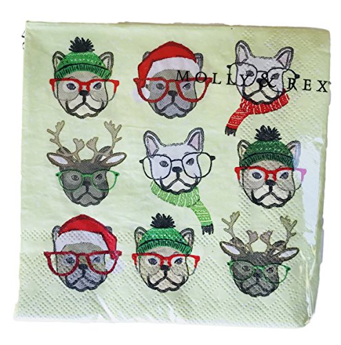 -. Brand : Molly & Rex -. Color : Mint Green -. EAN : 0802126162163 -. Feature : Set of 40 Cocktail Beverage Paper Napkins / 3-ply / 10" x 10" unfolded / 25 x 25 cm -. ProductGroup : Kitchen -. ProductTypeName : KITCHEN -. Size : Medium -. Title : Molly & Rex Cocktail Beverage Christmas Paper Napkins, Glasses Frenchie Dogs, 40 ct -. UPC : 802126162163