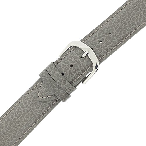 -. Feature : 18mm Grey Watch Band Genuine Leather Calf Smooth Padded with Matching Stitching / Band is Padded, Slightly Tapered Cut, and Matching Reinforced Stitching Around Band / Buckle Stainless Steel Polish Finish, Hypoallergenic and Soft Nubuck Lining / Pair of Stainless Steel SP.R.Ing Bars Included -Band Length: 4.25" Hole Side and 3.25" Buckle Side, including Buckle / Standard Length Watch Strap - Band offers Flexibility and Comfort