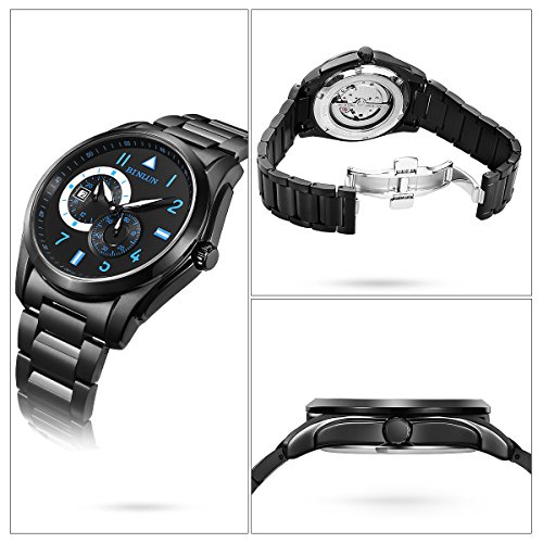 BINLUN 손목시계 맨즈 블랙 자동 감기 기계식 패션 멋쟁이 스포츠 워치 [병행수입품]