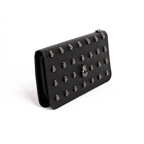 VORCOOL Langen Geldborse PU Leder Brieftasche mit Niet Reissverschluss (Schwarz)