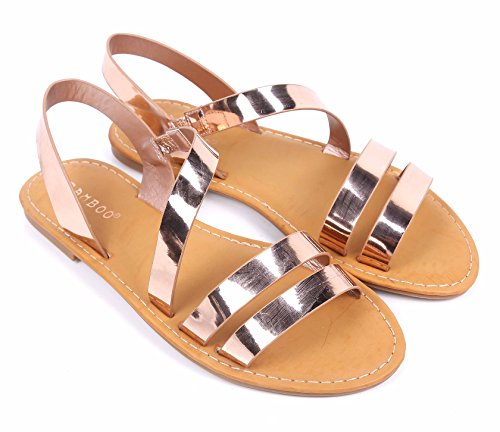 | BAMBOO Open-Toe Strappy Gladiator Fully Cushioned Footbed Slingback Slip-on Sandals Shoes |