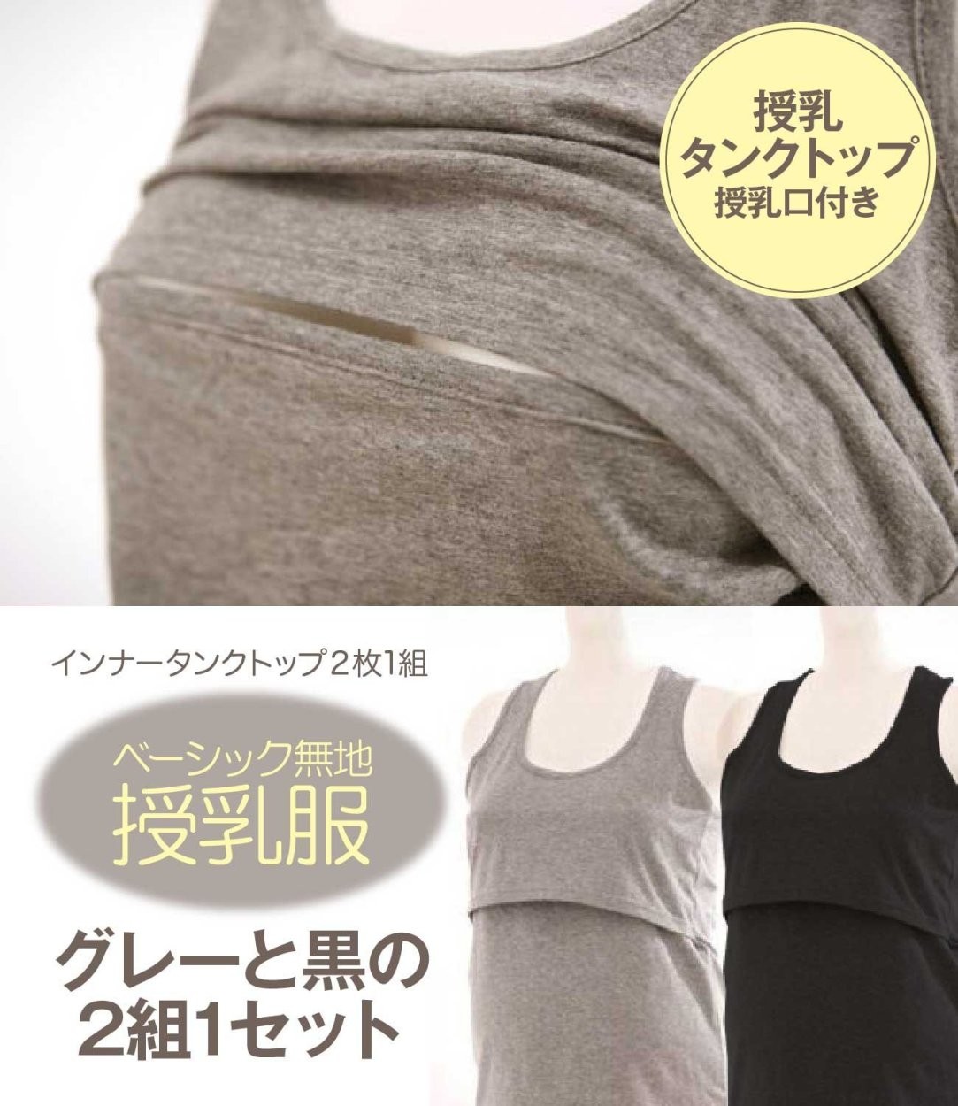 授乳口が目立ちにくい、いつでもさっとベビーに楽ちん授乳♪ 産前、産後、長くご利用頂けます。ベーシックな無地デザインなのでどの服にも合わせやすい♪♪カーディガンやジャケットのインナーとして大活躍。部屋着にしても、とっても快適です。お得な2枚セットです♪♪♪ 【商品情報】・【素材】綿・【サイズ】FREE 着丈:57 バスト:80-100・【対象】 女性用・【セット】2枚組(各色1枚づつ)3日〜4日以内に発送いたします。
