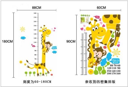 -. Title : Wall Sticker Decal, Child Baby Infant Height Measure Chart 180cm/6 Feet, Tree & Monkey by DongFan
