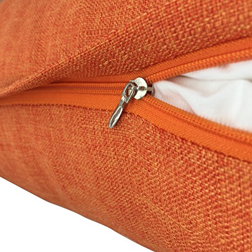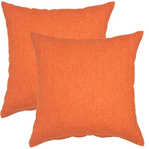 YOUR SMILE Pure Square Decorative Throw Pillows Case Cushion Covers Shell Cotton Linen Blend 18 X 18 Inches , Pack of 2 (Orange)