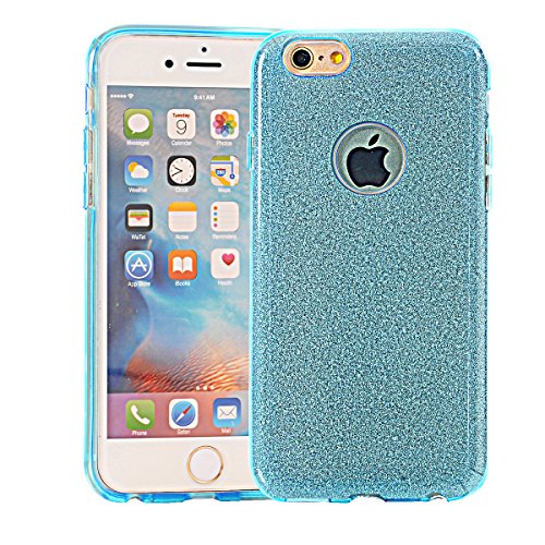 Iphone 6s Plus Case, Ultra-thin Luxury Glitter Sparkly Flash Sheer Film Gradient Soft Flexible TPU Protective Cover Case Attached Dust Cap Slim for Apple Iphone 6/6s Plus 5.5 Inch Blue
