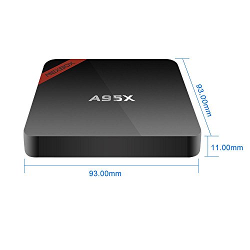 -. Feature : [Super Mini and Smart]-- the new A95X tv box is only 93mm in length and width, with height 11mm. But it has everything you needed inside, USB 2.0*2, Wifi IEEE 802.11b/g/n, 2.4G, LAN, Spdif, HDMI, TF Card slot. / [Amlogic Newest and advanced S905X chipset]--support both H.265(HEVC) and VP9 decoding, runs faster than the normal S905X chipset. It could also support HDR Vivid World, you can watch videos in detail like never before with select HDR content. Witness scenes and characters come to life in vivid contrast, color, and clarity. / [Newest 16.1 KodiCenter]--KodiCenter, developed by NEXBOX engineer team, is a place where users can find many useful Kodi add-ons for their TV boxes. Here, you can find an add-on which can help to maintain your Kodi (update, backup and much more), so you can be always updated with your HD video fun. / [The customized remote control]--A95X comes with two special features: One-Key to Live and One-Key to Kodi. Just press one-key and you can watch live TV programs. Also. just press one-key and you can come to the Kodi interface. / [Great Gift]--Gift is a timeless way to remember birthdays or special moments, and NEXBOX A95X can be a great gift for your families and friends. As a popular consumer electronics brand, KOBWA NEXBOX delivers love for people.
