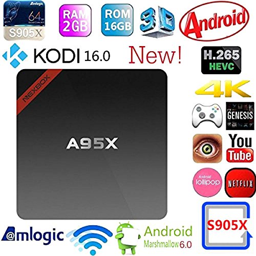 -. Title : [Newest NEXBOX A95X]Kobwa Andriod 6.0 2G/16G KODI 16.1 4K TV BOX Pro Amlogic S905X Cortex A53 2.0GHz Pre-installed Support VP9 Rooted Streaming Media Player with Remote