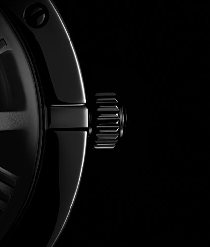 42mm black stainless steel round case with shatter resistant Krysterna crystal dial window