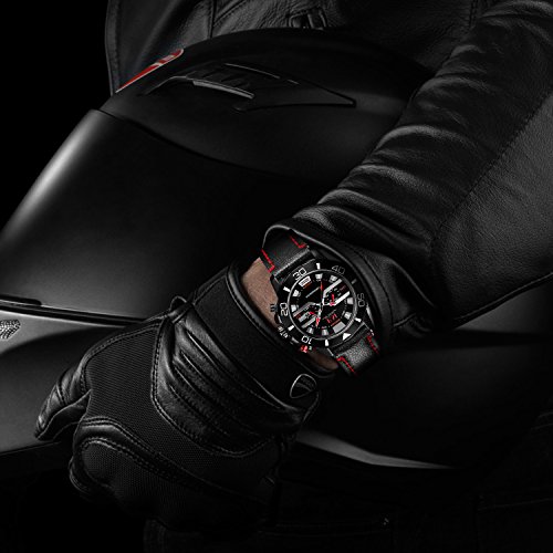 4. Comfortable Adjustable Leather Band Strap: High quality black genuine leather band with Buckle provide comfortable wearing experience and convenient to adjust the wirst, fits for all wrist sizes.