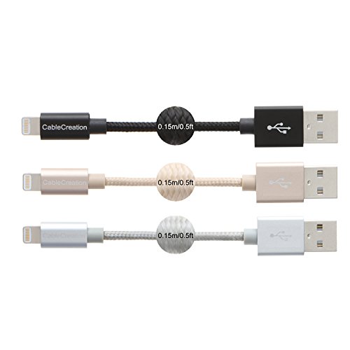 CableCreation Apple MFi Certified Metal Plug Cotton Jacket Lightning to USB Cable - 15CM for iPhone 6/6S/5/5S/5C, 3-Pack, Gold/Silver/Black