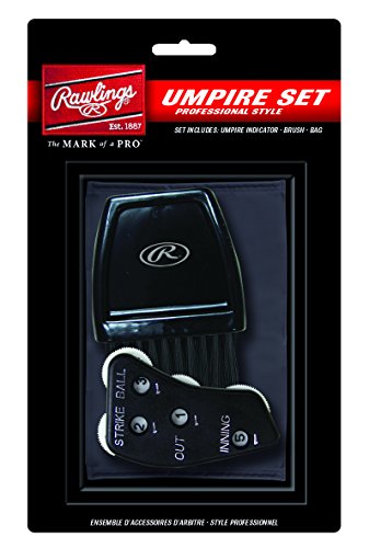 Studio : Rawlings Sporting Goods Publisher : Rawlings Sporting Goods Binding : Misc. Product Description Umpires Accessories Set...Everything You Need Behind The Plate! Rawlings Umpires Accessories Set features: Pen Rawlings logo Ballpoint Plate Brush Super convenient to have on hand Plastic handle Nylon bristles Umpire Indicator Rugged, durable lightweight plastic design 4 function indicator of 3 balls, 2 strikes, 2 outs, innings Fits comfortably in hand Umpire Bag 100% polyester Professional style 12" x 12" Wide tunnel belt loops Meets all league requirements Rawlings Baseball...Decades Of Quality! 0