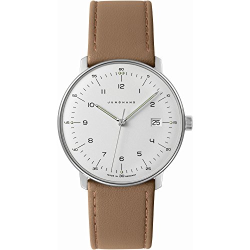 -. Title : Junghans Men's 'Max Bill' Quartz Stainless Steel and Leather Dress Watch, Color:Beige (Model: 041/4562.00)