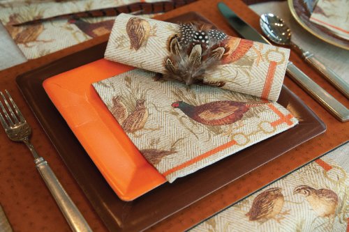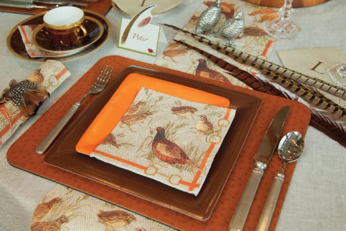 Entertaining with Caspari Grosgrain Paper Salad/Dessert Plates, Deep Orange, Pack of 8