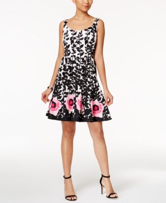 Make a statement in this bold floral-P.R.Int dress with fit-and-flare shape by Nine West.Concealed back zipper with hook-and-eye closure