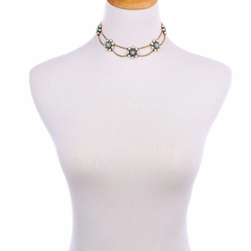 Production name ::KISS ME Simulated Pearls Flowers Choker 2017